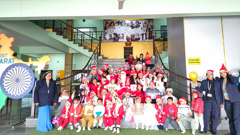 Our school campus was filled with joy, laughter, and festive spirit during the Christmas Celebration organized for our little stars. The school auditorium was beautifully decorated with a Christmas tree, stars, lights and colourful decorations, creating a warm and cheerful atmosphere. The celebration began with adorable dance performances by our Pre-Primary children, who spread happiness with their cute moves and smiling faces. Students also sang melodious Christmas carols, which added a magical touch to the programme and reminded everyone of the true spirit of Christmas—love, peace, sharing and kindness. The most exciting and awaited moment for the children was the arrival of Santa Claus. His presence filled the hall with excitement as he distributed sweets, chocolates and toffees, spreading cheer and happiness among the students. The programme concluded with smiles, laughter and a festive spirit all around. It was a joyful and memorable day that left behind beautiful memories.